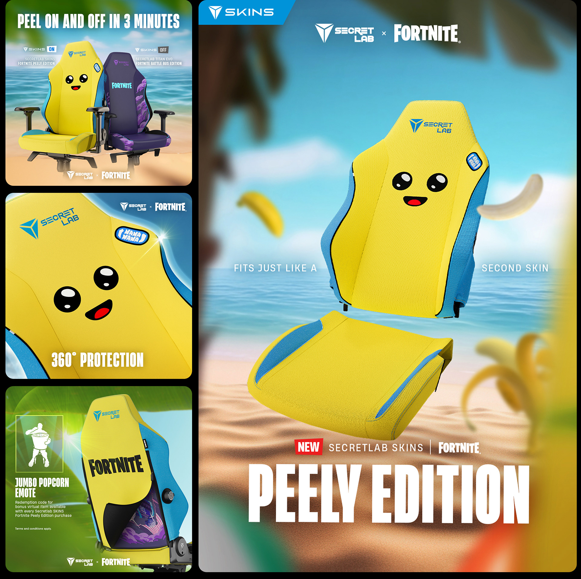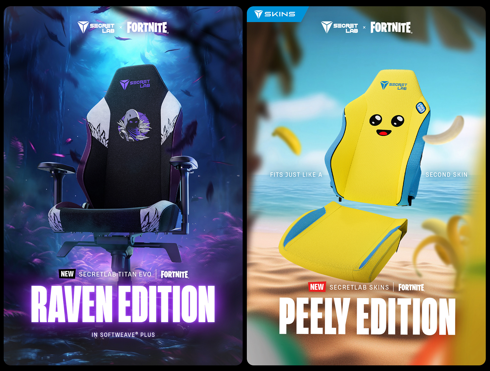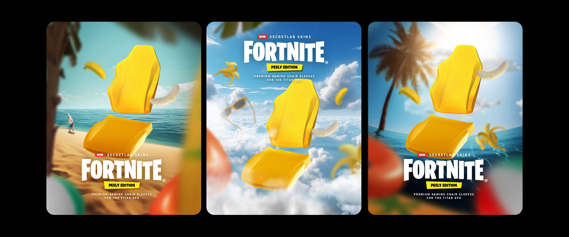 This project showcases the creative journey, from art direction and creative process to execution, for the launch of the Secretlab Fortnite Collection — Secretlab TITAN Evo Raven Edition chair and Secretlab SKINS Peely Edition, designed for digital platforms.