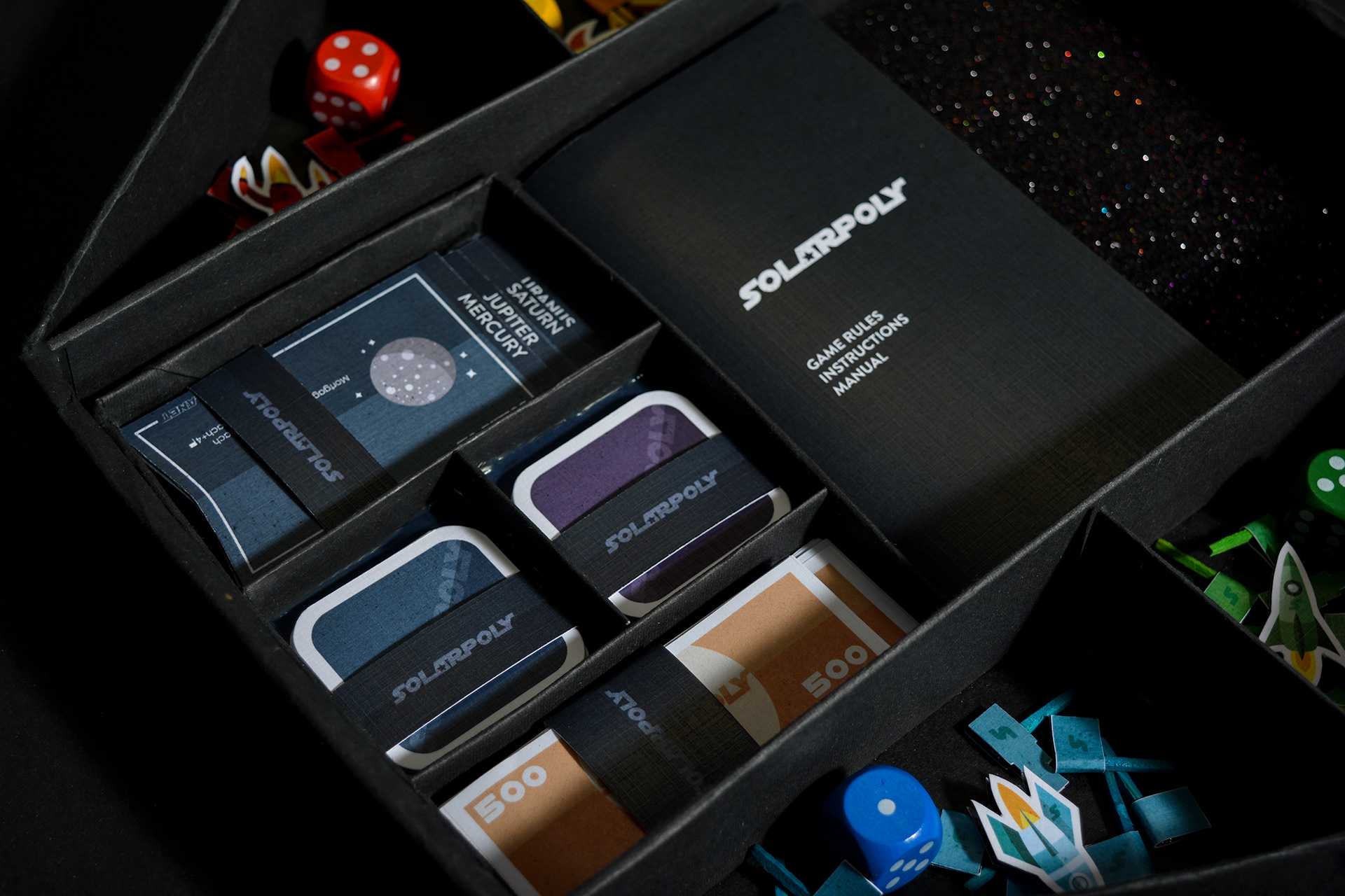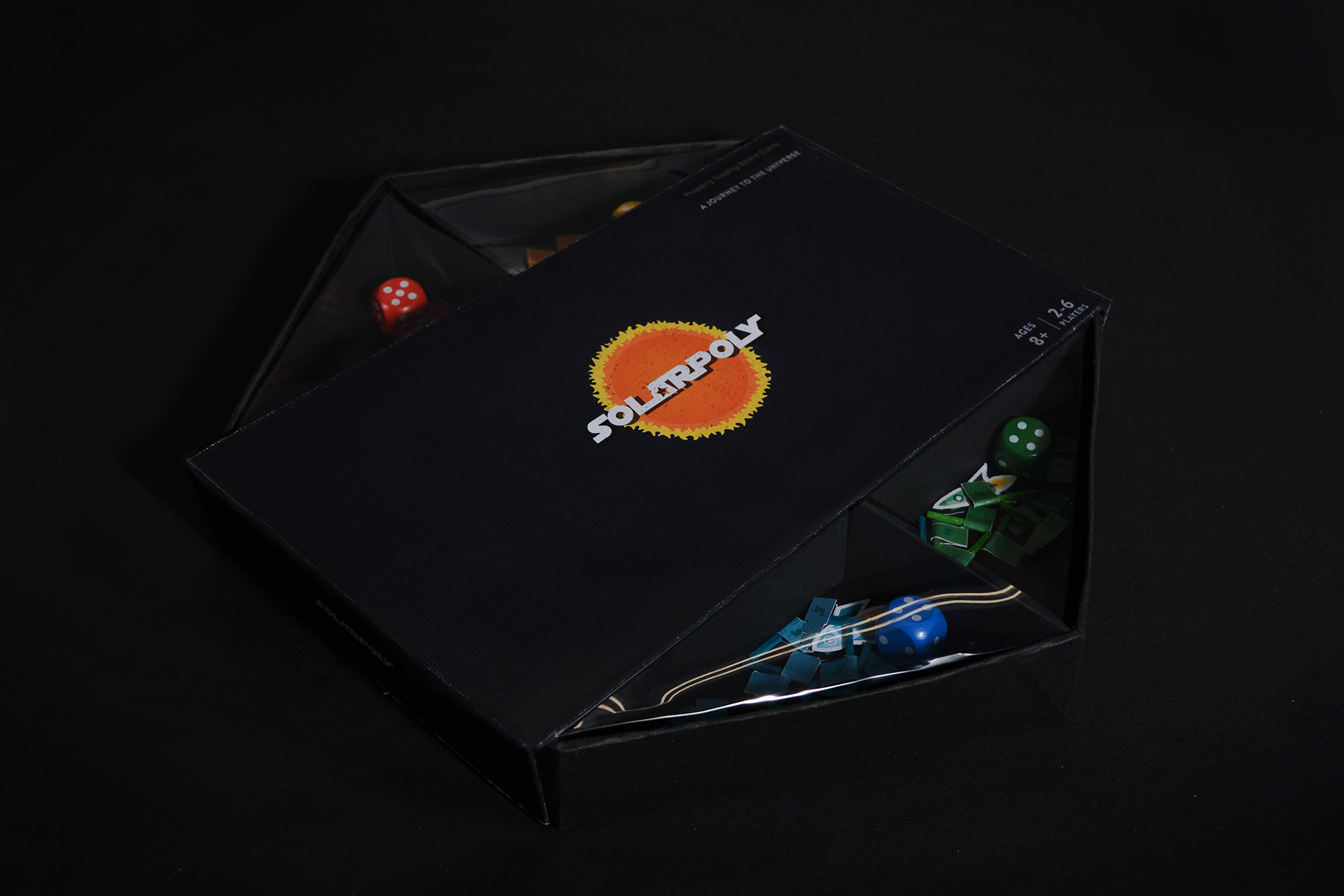 The monopoly game board game and packaging design inspired by solar system and universe.